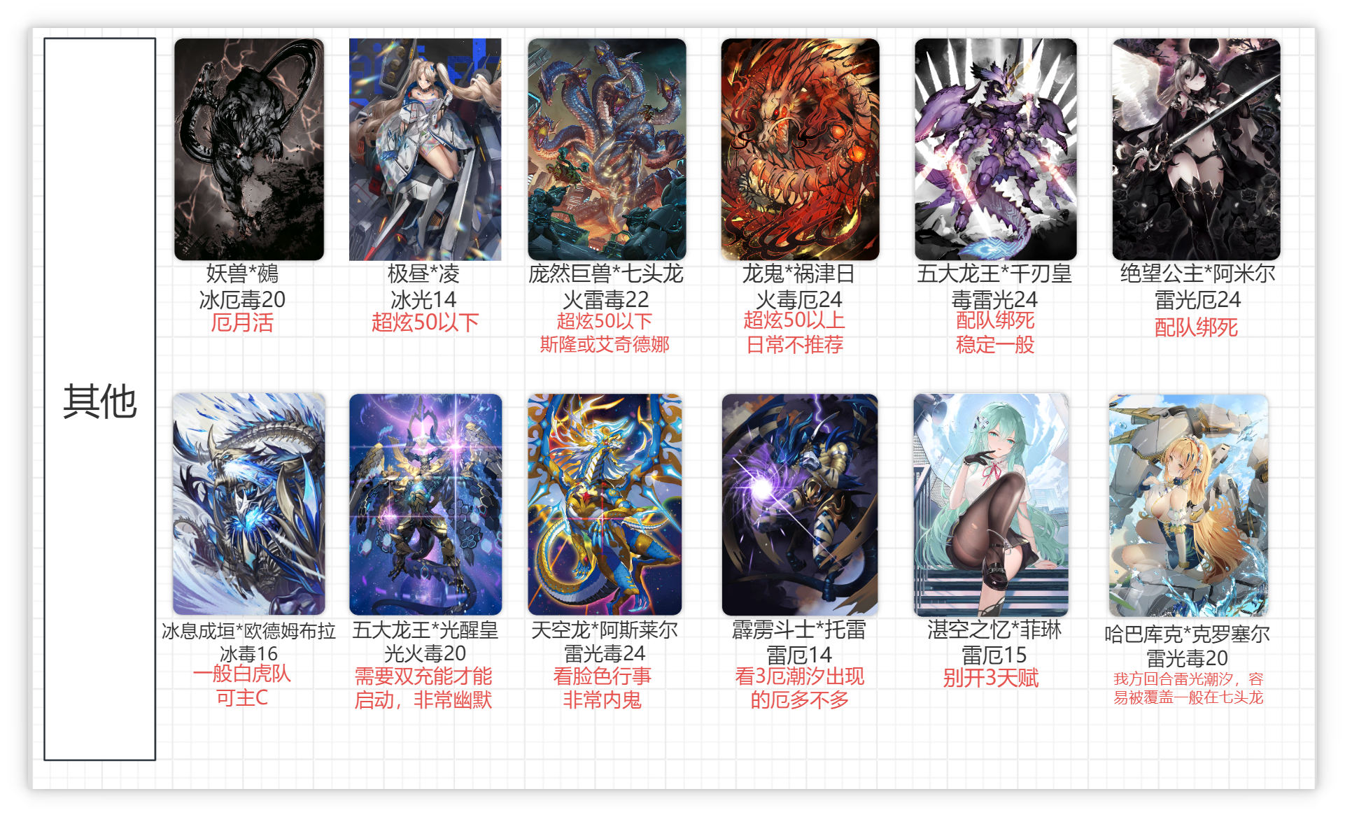 第一张是有些推荐顺序的,总之还是看配队,第二张是有些争议的,就放了补充。基于主线超炫竞技月活都可行搞的。是按我的理解做的,千人千面,错误可指出,没vip第一张也写不了了。