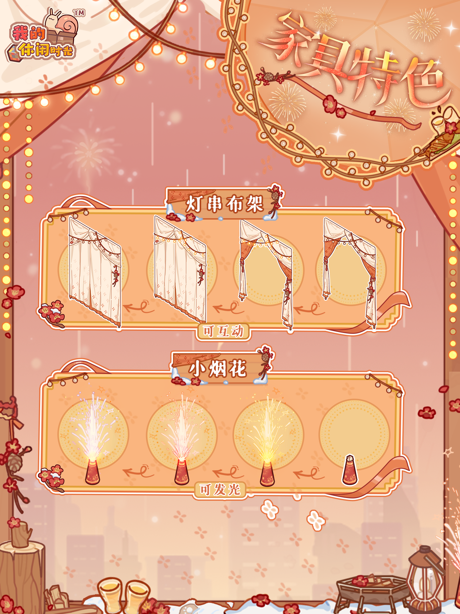 2.获得惊喜礼盒即可自选「炙香年聚」套间中的任一家具/装修;获得普通礼盒即可随机获得刷新券、加速券、营养液、蜗壳币、初级设计稿;3.单次投入的新年积分不得少于30,且单次投入的新年积分越多,获得惊喜礼盒的概率越高,例:投入新年积分*50,获得惊喜礼盒的概率为50%。