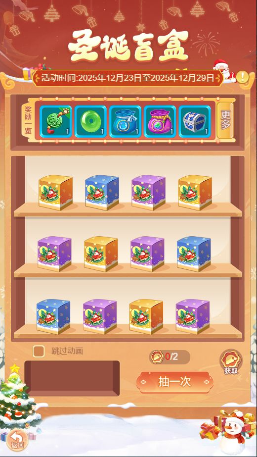 抽取圣诞盲盒需要消耗圣诞币,圣诞币可在活动期间通过完成任务获取