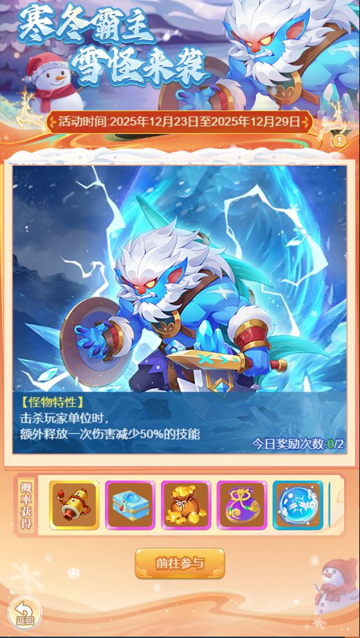 2.挑战时请注意查看每日雪怪的特性,不小心应对可是会吃大苦头的