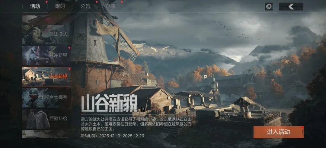 点击【活动】-【玩法模式】-【山谷新貌】即可进入活动页面。