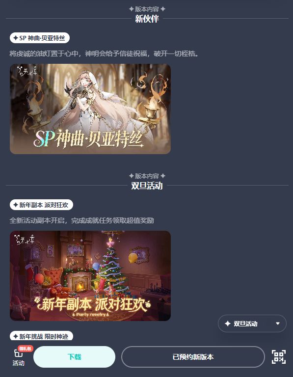 队长可以在版本预约页中查阅新版本资讯,第一时间了解即将更新的活动内容!