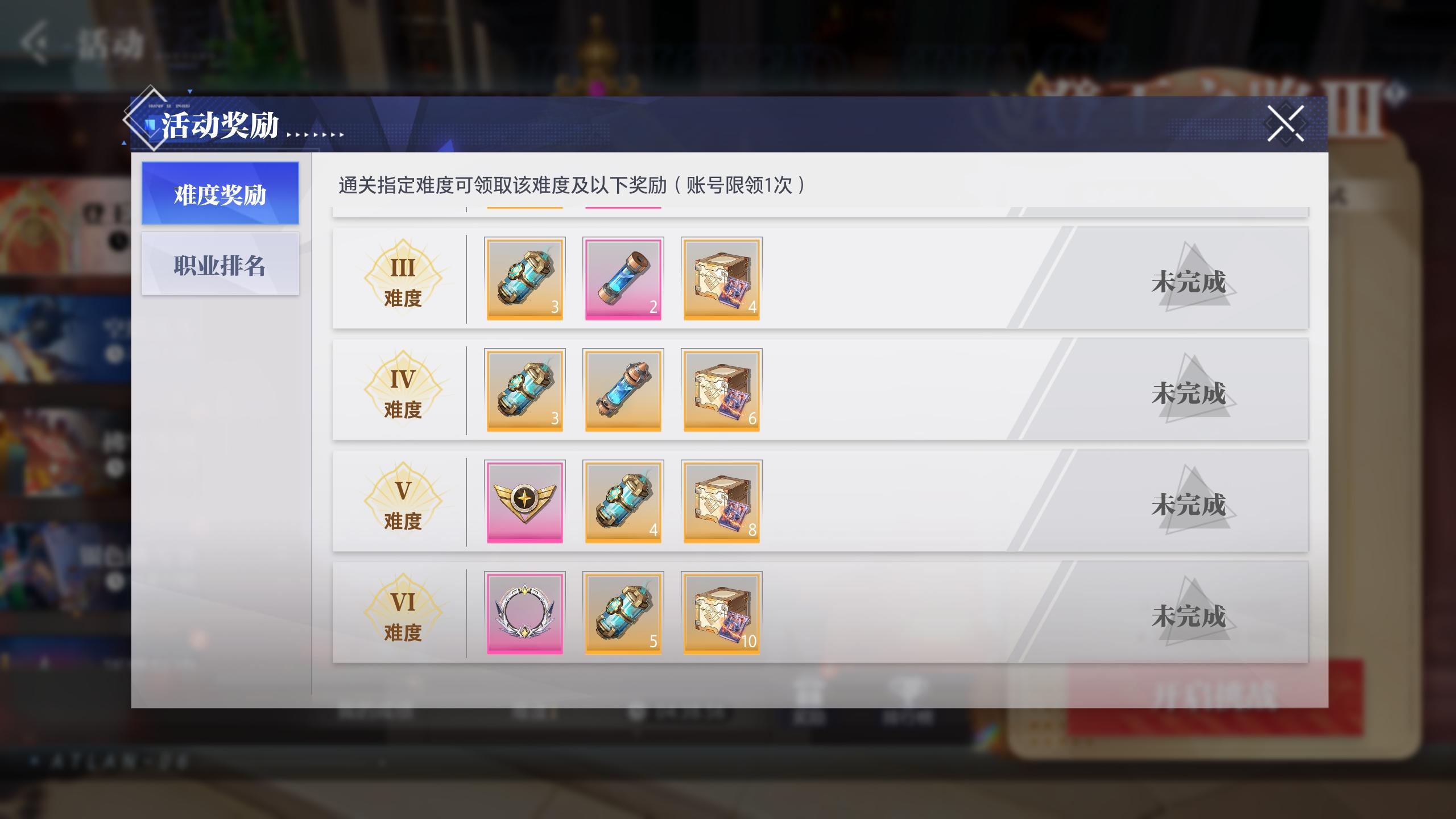 🔹开始挑战前可自由选择。成功通关即可领取当前及更低难度的通关奖励,包含专属头像框、专属头衔、大量卡包与圣物之芯等。