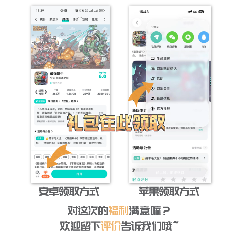TapTap平台搜索【最强蜗牛】点进页面,即可领取礼包码