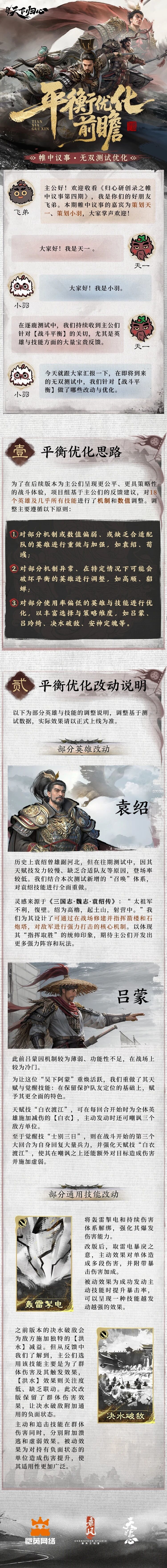 本期《帷中议事》特别邀请到策划天一、策划小羽,为主公带来「无双测试」平衡优化前瞻,敬请主公查阅!