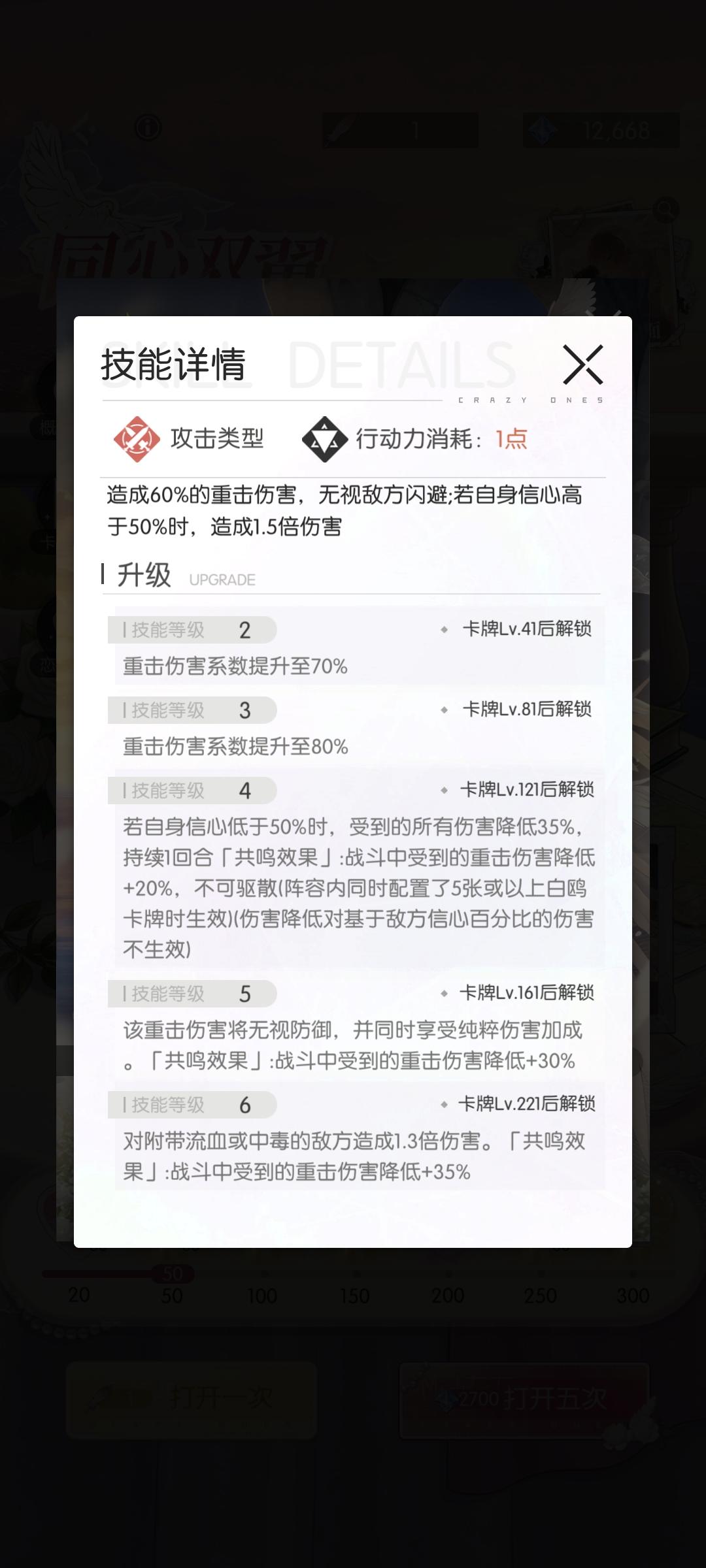 何况白鸥卡攻辅皆足,凑齐共鸣所需的五张卡不难。以我的常规阵容而言,谎言+拳击+泳装+鹊桥(+桃夭/虚实)都是常备小组合,而且这个先攻免伤的效果也很实用。叠加老妹骑车,轻松打造铁甲刺猬。总的来看,这张卡只要有121级也就是两张就可以形成战斗力,161级也就是四张即可升格为强卡。