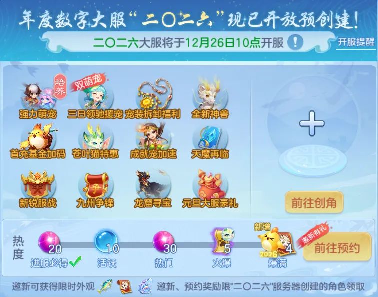 “二〇二六”元旦大服开启预创建!专属挂饰预约领取,双萌宠开局