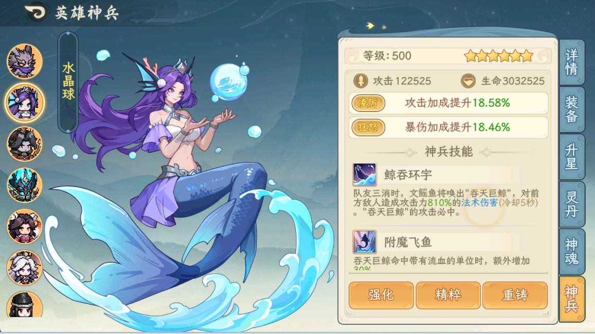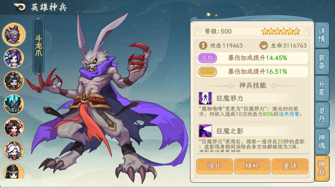 测试星级神兵配置为: