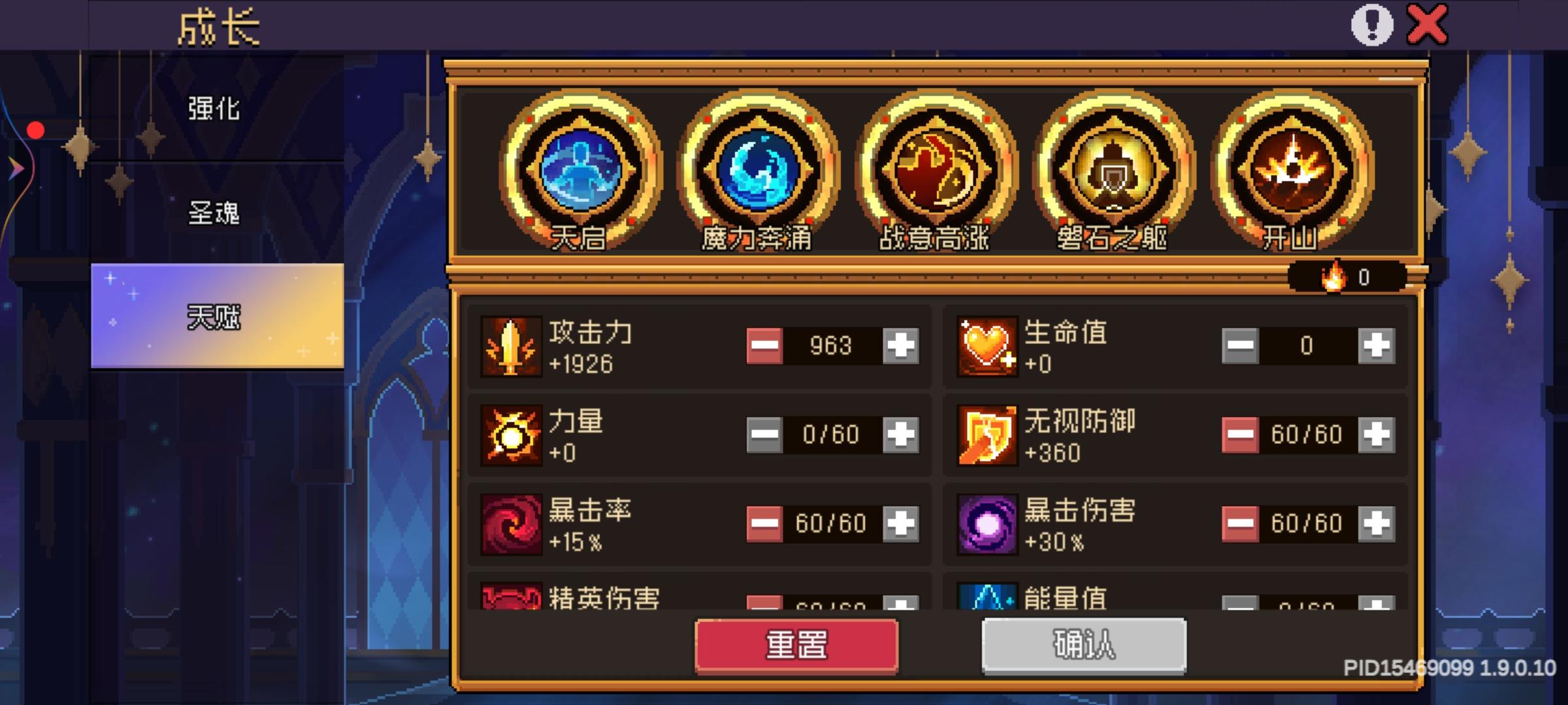 天赋如图,优先拉满暴击、暴伤、命中、精英、无视,生存不够加伤害减免,技能减耗想加就加,剩下全点攻击力