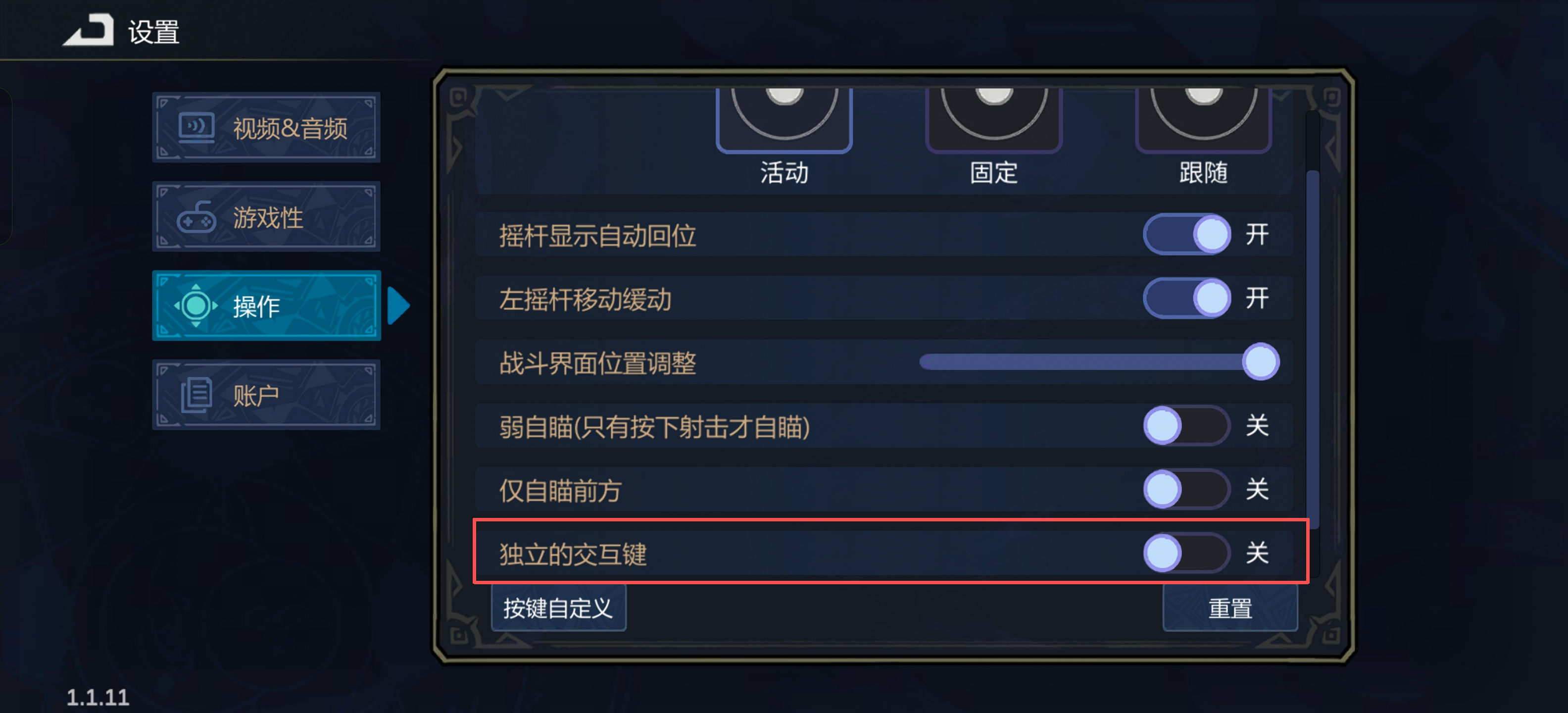Q:我经常在战斗中误开启宝箱,有没有将交互按钮和攻击按钮区分的方法?