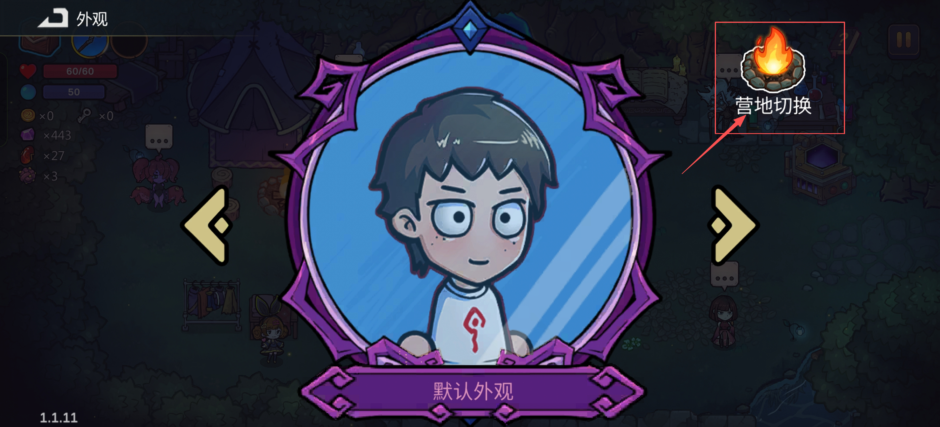 再点击镜子界面的右上角"营地切换",即可切换DLC内容