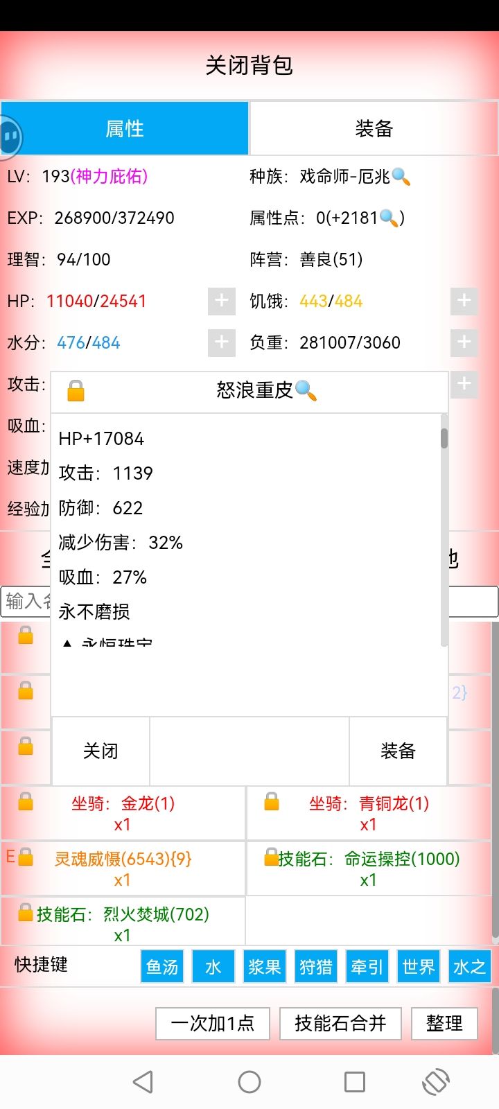 附一下装备面板,运气可以说是很不错了,原本准备拿到亚龙就行,甚至准备了1700+的神圣重锤,没想到几下就出了2个黑暗亚龙