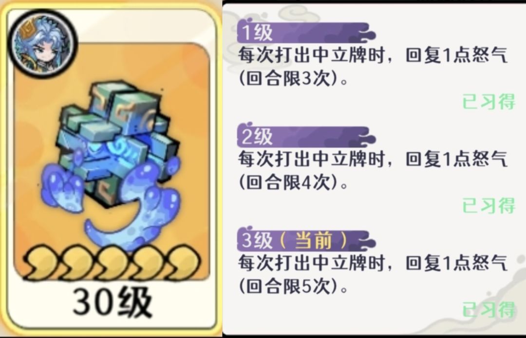 2️⃣手牌中每有一张中立牌,怒气消耗-1(最多减3);