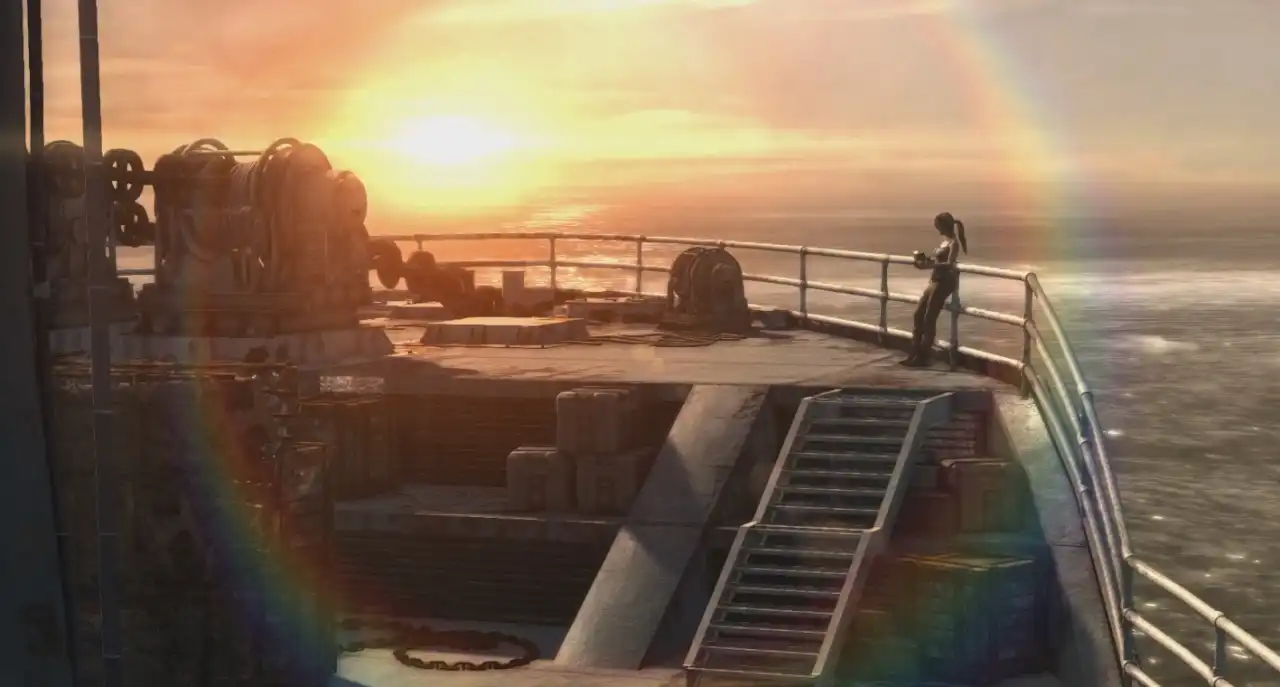 之后就是很长一段的赶路和“打野”时间,当来到信号塔时,便迎来了游戏中非常震撼的一段剧情。顺着塔往上爬,风越来越大,望着晴空万里的天空和远处辽阔的海洋,是何等的波澜壮阔。 坐在信号塔上的劳拉出色的完成了这次任务。