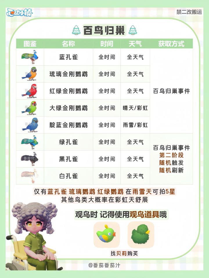 常驻观鸟事件百鸟归巢 全图鉴解锁