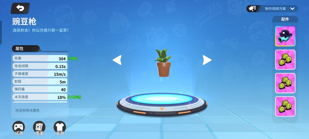 评价:此搭配的想法是把豌豆枪当做冰枪用,配合其他武器秒杀敌人,当然在没有武器配合的情况下用此搭配打骚扰也是可以的
