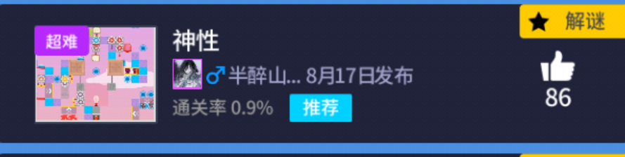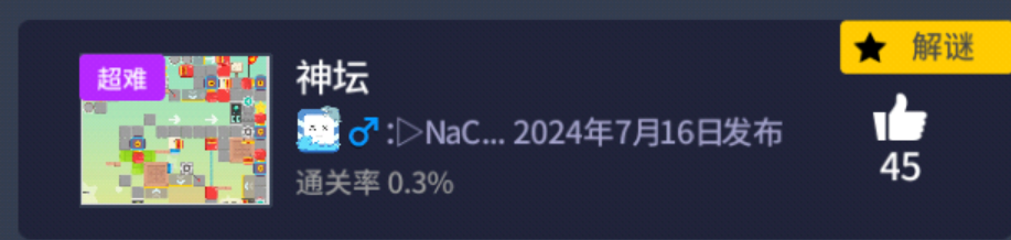 与芬芳之前的风格有很大不同,这张地图没有太大的布局和大量的组件,而是小巧隽永,视觉效果也很不错👀虽然组件数量不多,但是通关时间还是实打实的5分钟,可以看出其组件的利用度🎈整体还是挺有思维含量的,难度依旧较高,但还是挺有趣的💦