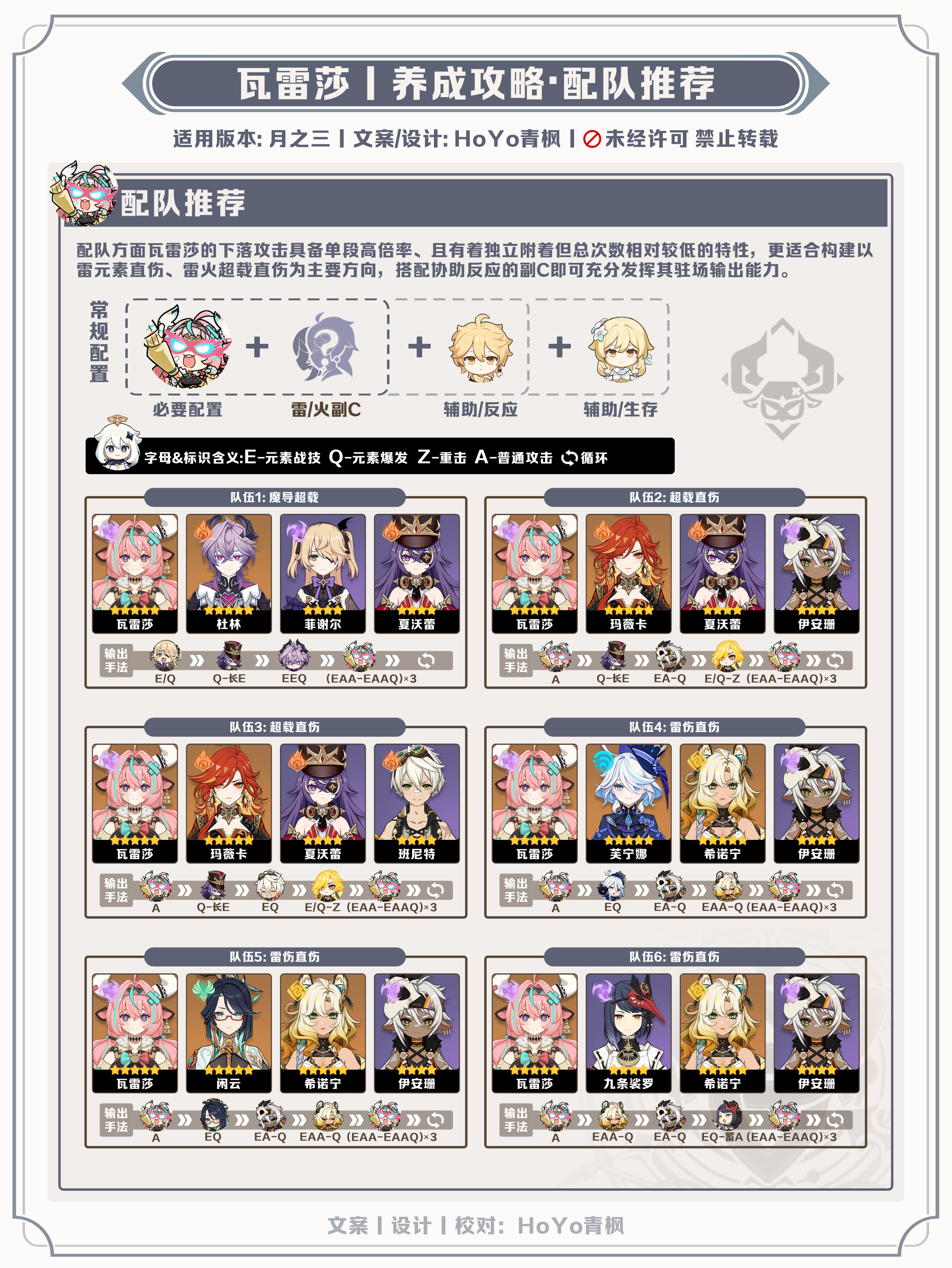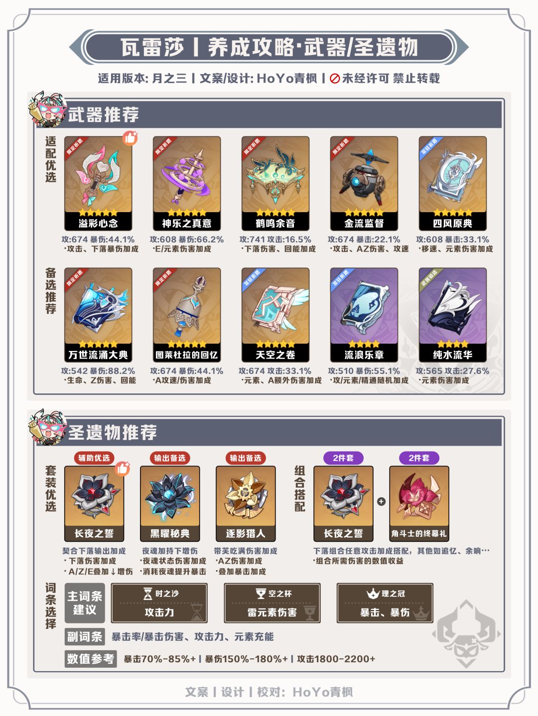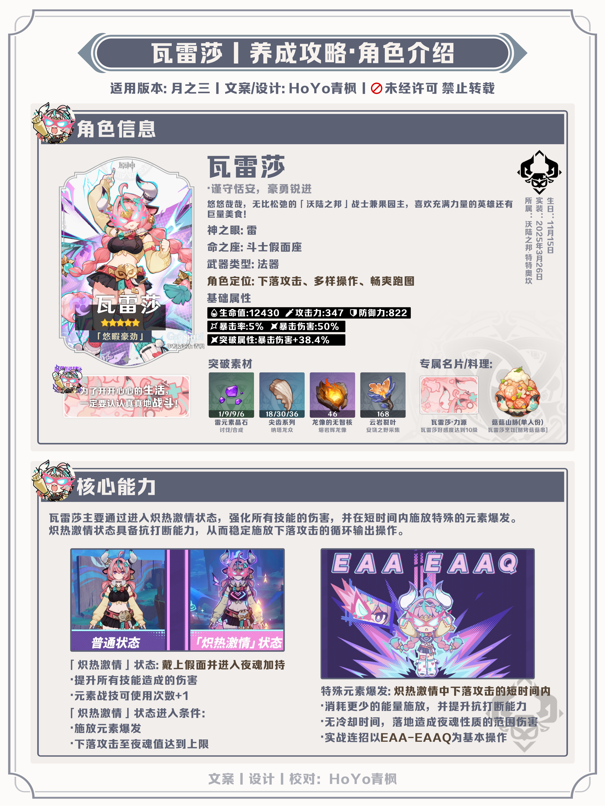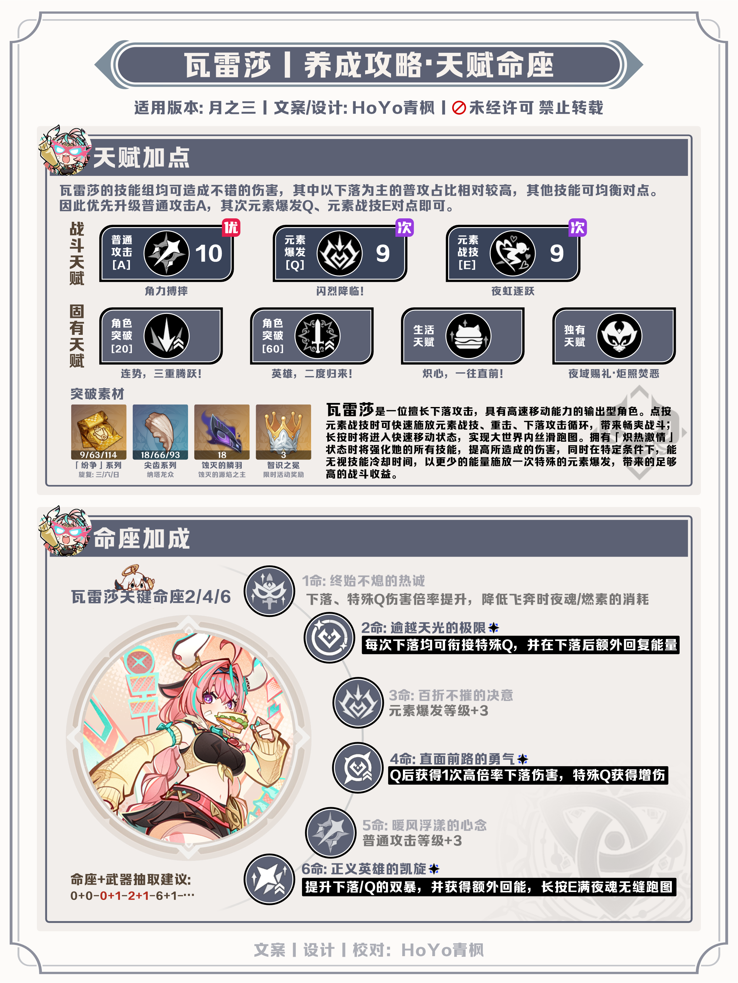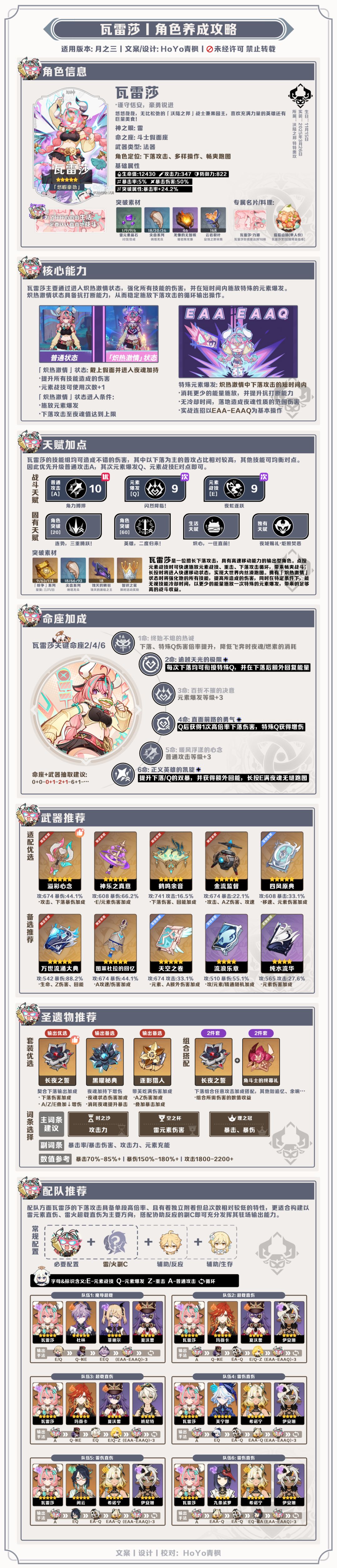 接下来以图解的形式简要解析「瓦雷莎」的养成参考,帮助大家快速了解角色及后续培养方向;