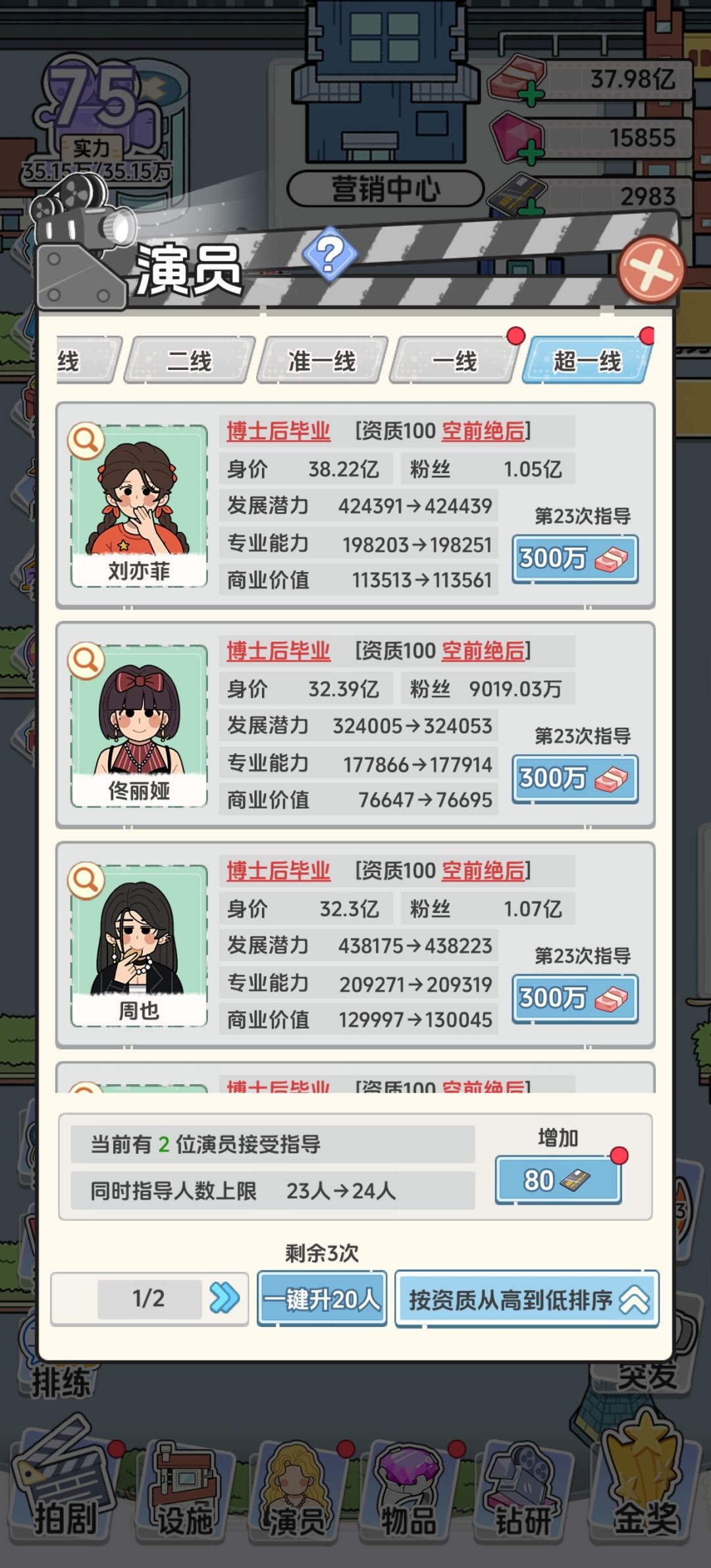 3. 剧本数在线才能涨,最好的办法就是闲时手机挂着,一小时涨20个。