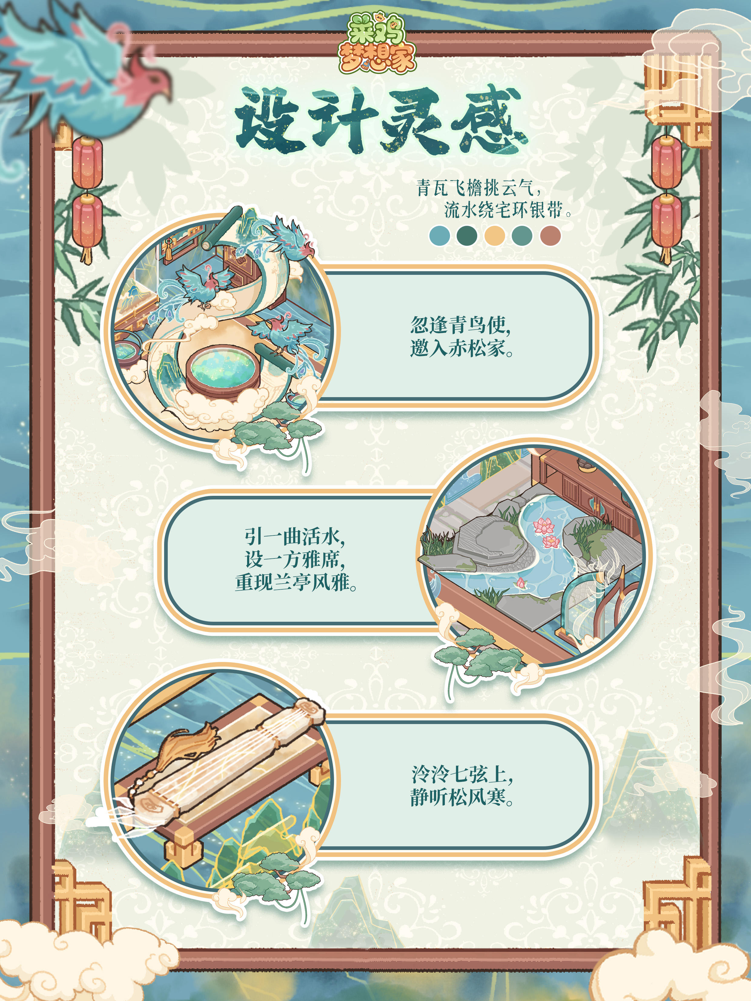 版本上线后,菜友可以前往街区的家具城获取限时展演「青鸾云栖」,菜友们先来欣赏套间设计展示吧!
