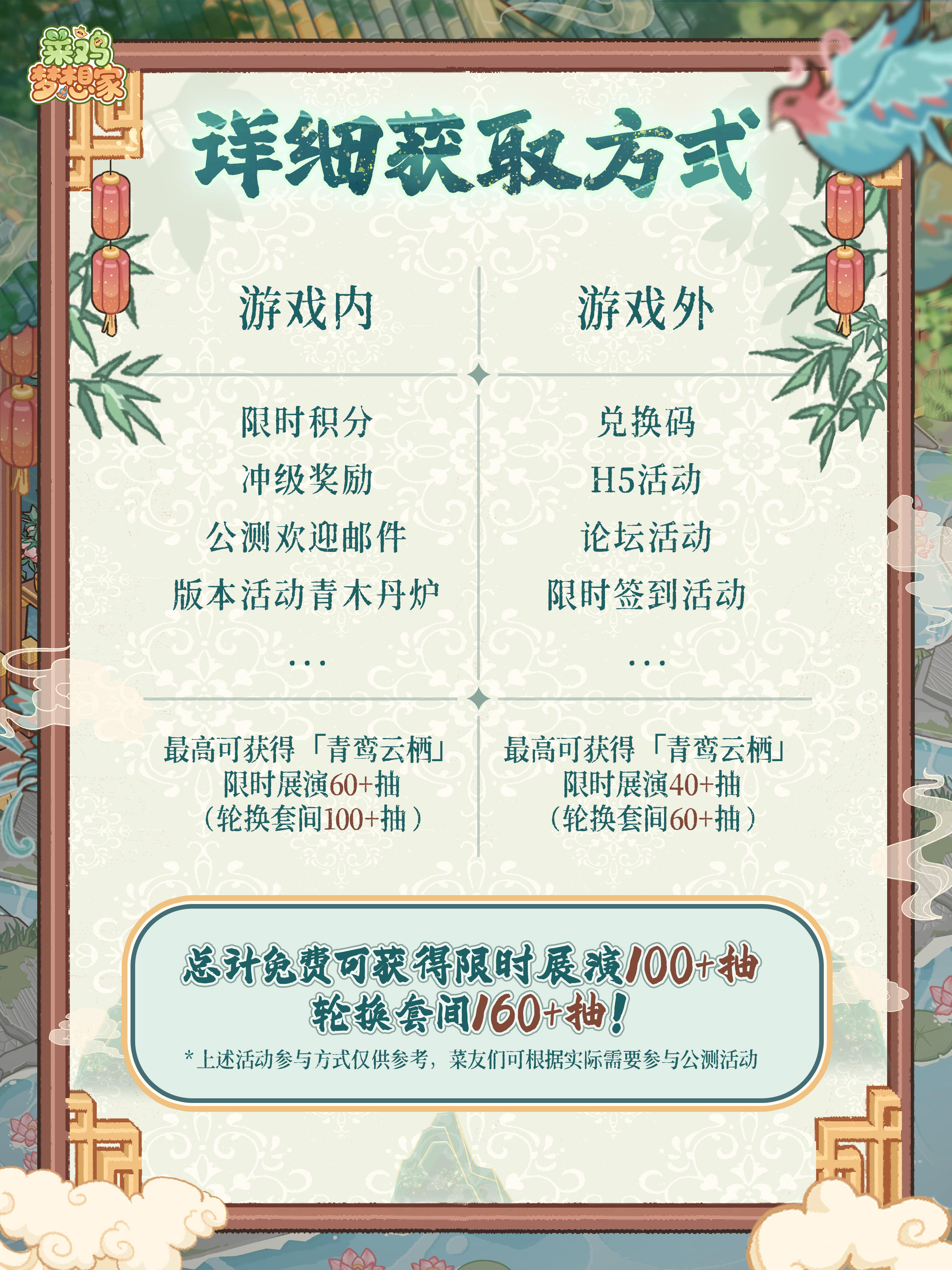 1.0版本「青鸾云栖时」上线后,大量公测福利等你来拿,参与公测活动更可免费获得限时展演「青鸾云栖」100+抽!