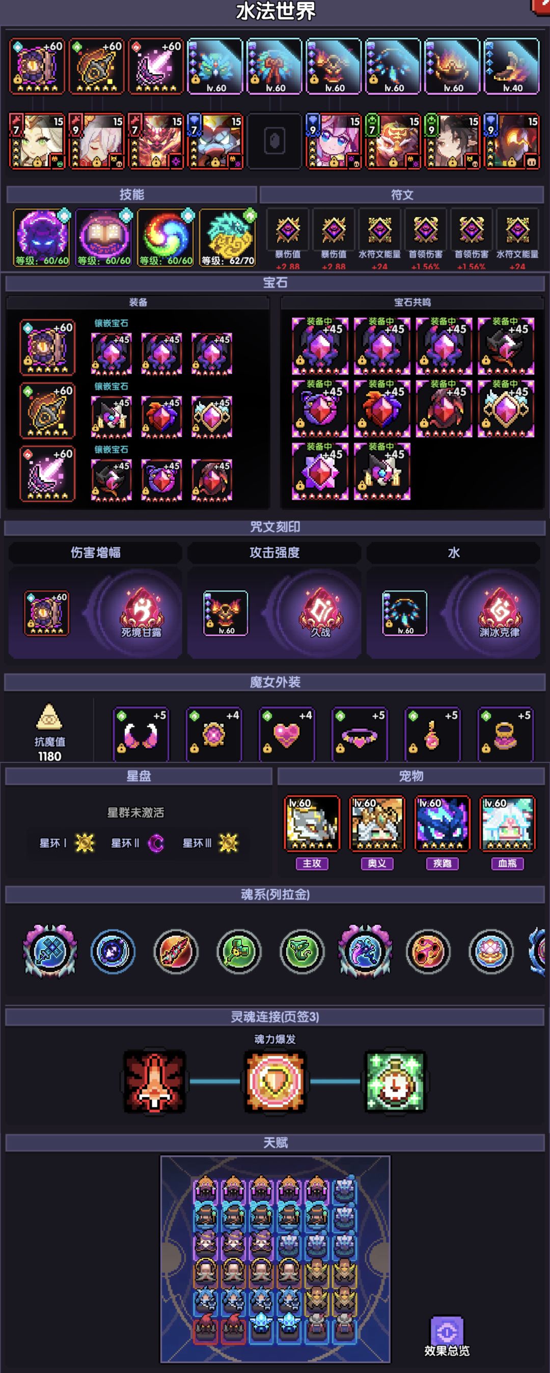 3.游辅(60+cd 二环带火 天赋带有为之人,毒灵 武器带9安度技能+外装木二阶外装 凑够71封腾 技能共鸣71+齐射吃满加成,天火释放五次后停止释放)