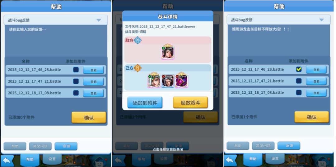 战斗bug反馈功能