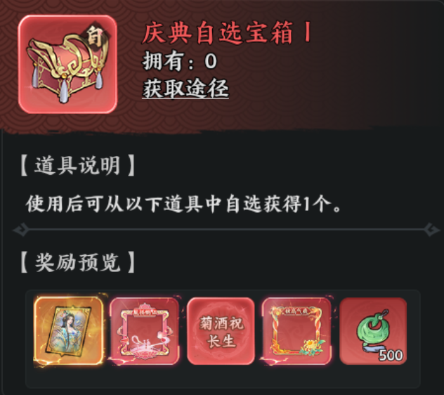 另外,还有庆典自选宝箱I、II、III供各位主公大人自主选择。