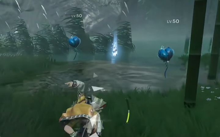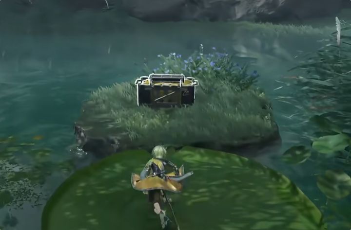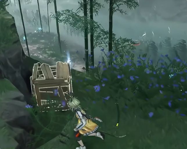 要收集四个光点才能打开箱子。一个在山崖上箱子旁,剩下三个都在水畔竹林里。