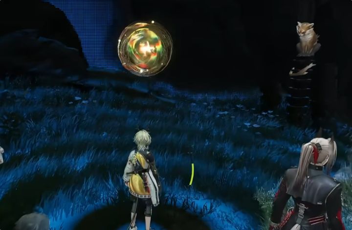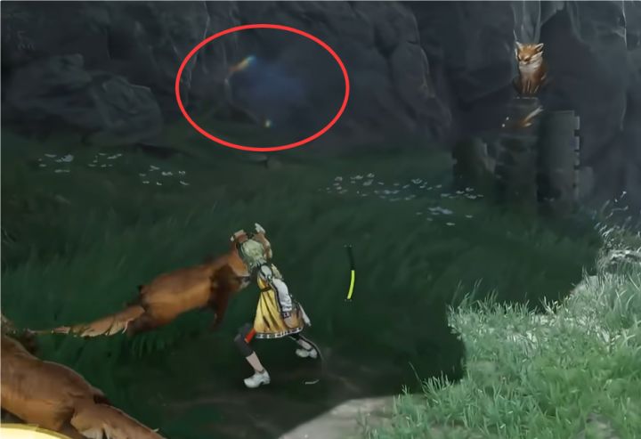 被三只小熊猫围着的地方有个隐形的醚质,对它使用扫描让它显形。