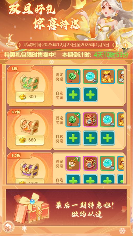 2.自选奖励可由少主从提供的奖励选项中自主选择