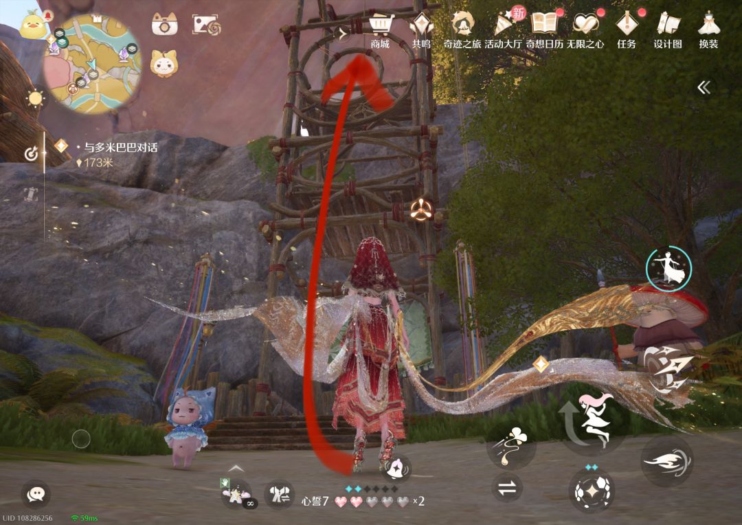 跳绳点位置:传送到蜗牛城二层中转站,往右前方的电梯走,出电梯,沿着河向前走,就能看到跳绳点。