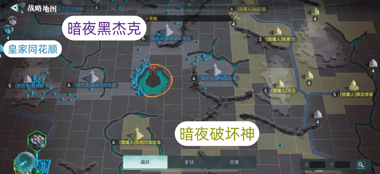 目前,暗夜黑杰克掌控三座实验室,暗黑猎魔人掌控一座实验室,各方进入休整与战略调整阶段。资源分配与战术布局仍在持续,下一次大规模冲突或许已在酝酿之中。