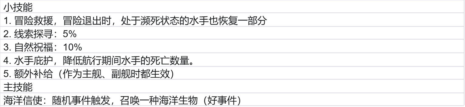 水手庇护:这个属于极地探险大神技能,极地探险最强之船。
