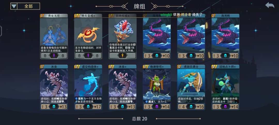 理想卡组:过牌(1~2张)涨法力的魔法卡(3张)稳定提供魔法的生物&装备(1~2张)英雄装备(2张)卡组厚度(20~24张)