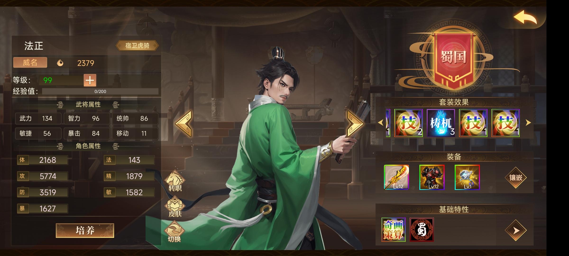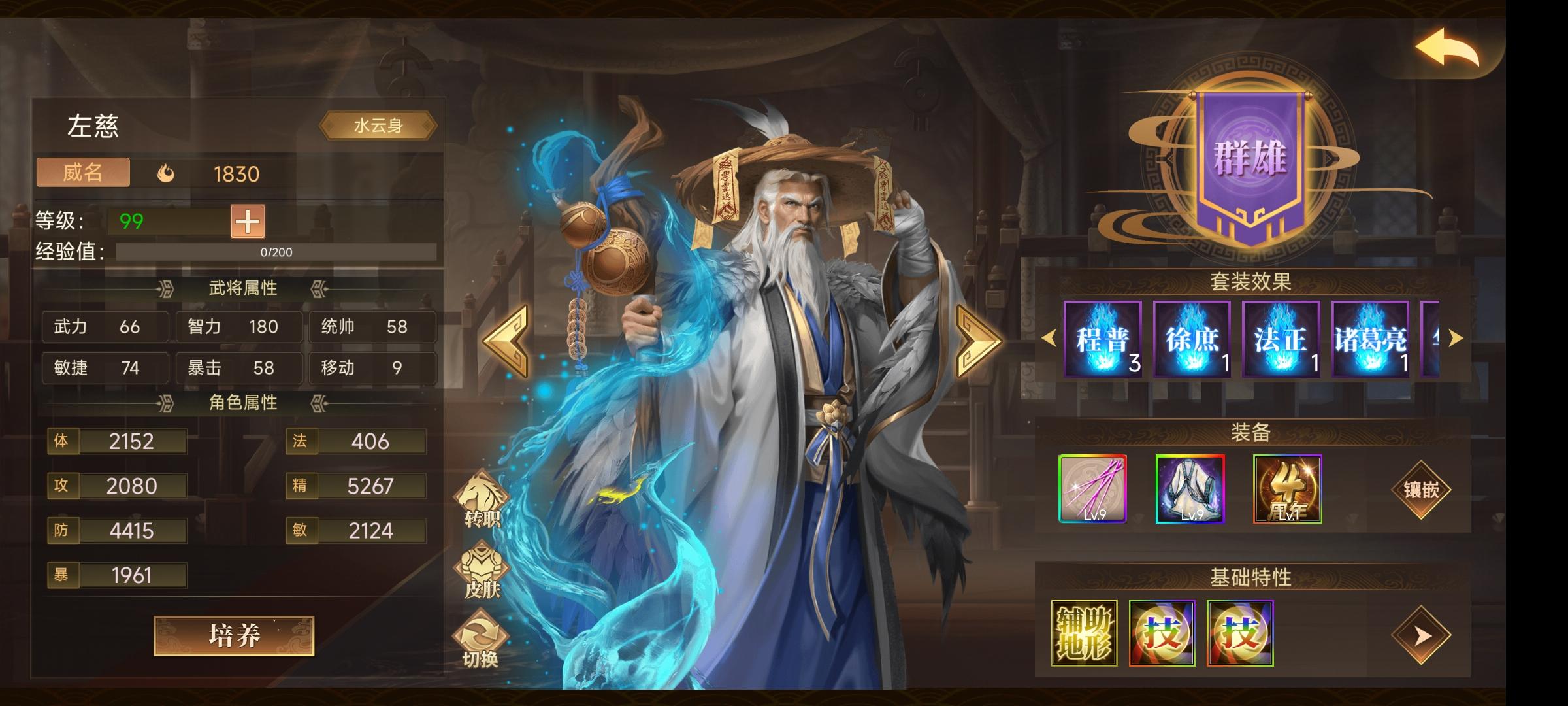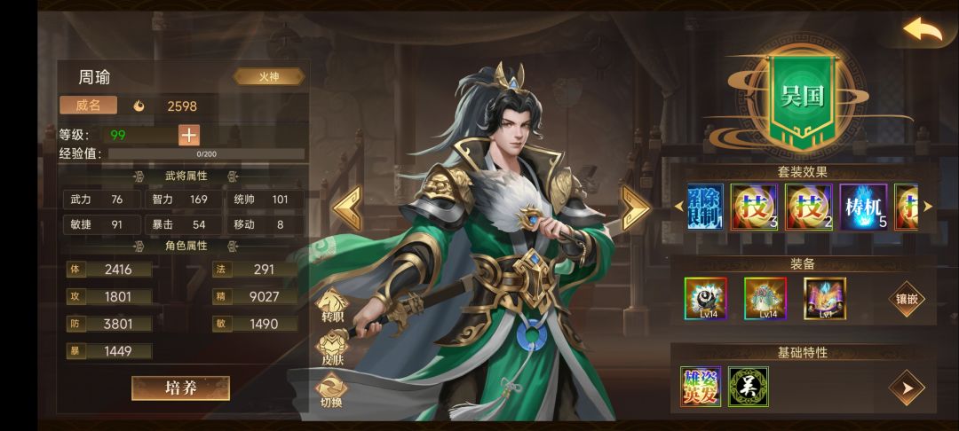 2、配装主要是周瑜的3法正换成3诸葛,左慈辅助换成4周年,马云禄换成法正,其他装备都是一样的