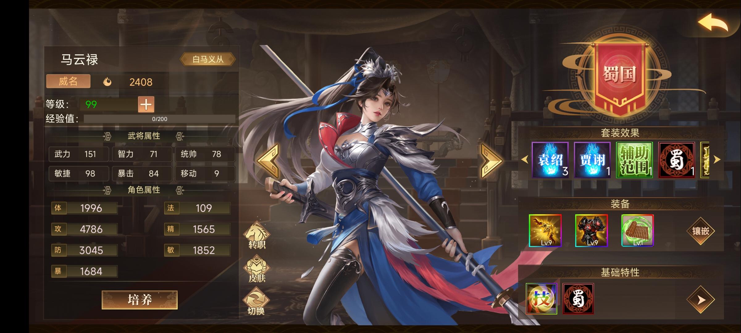 1、因为国栋1需要平均威名2000以上,所以下面有的装备是凑威名的,战场中用处非常小,如果你威名够了,可换其他有用装备