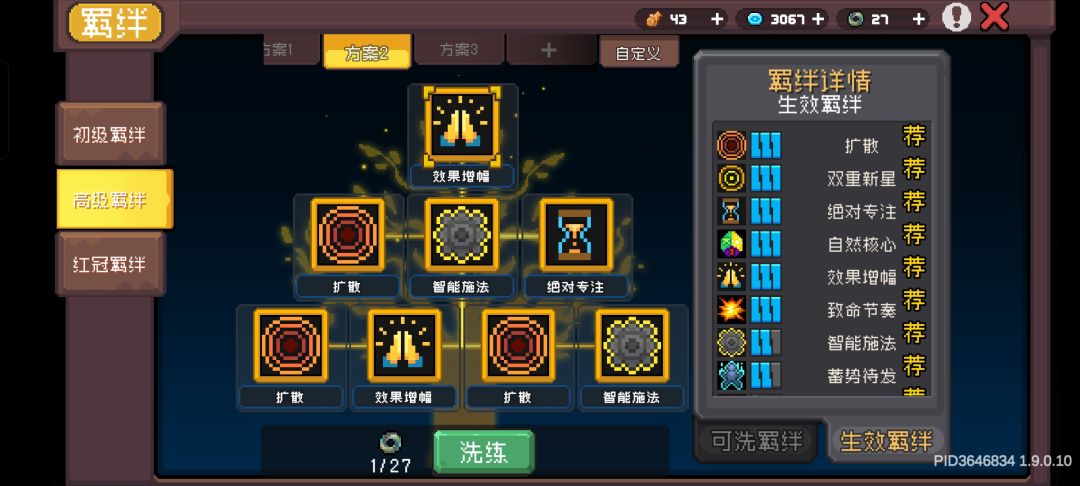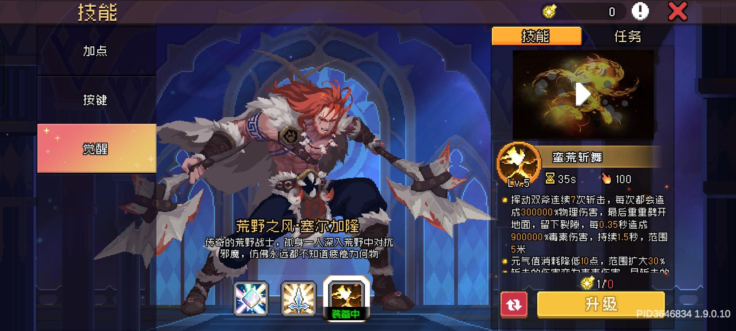 剩俩位置带厄运(100伤害提升)和引力(聚怪),副手武器洗蓄势用旋风斩触发3级效果,智能放灵药和毒爆