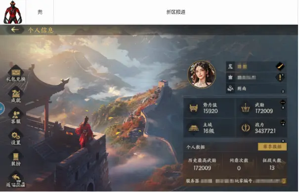 九妹点评:开区13天就有17万武勋,活跃高玩一位!