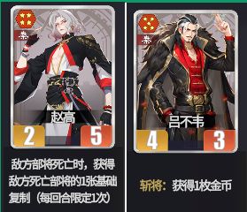 【使用经验】★被首先击杀的部将,往往是突袭或者护卫,从这点上来看,普通赵高作用甚至不如谛听,毕竟谛听有可能复制到核心卡。