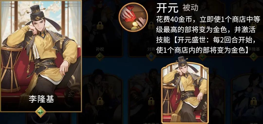 ③李隆基:现版本李隆基往往在升级5级商店时激活技能,很容易金到蒙毅或者李斯。