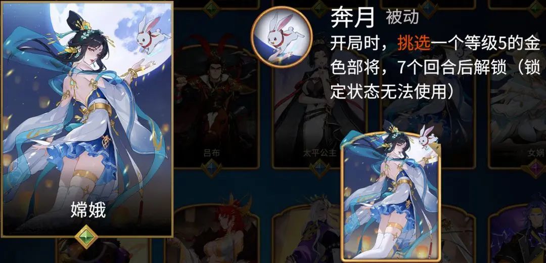 ①嫦娥:有几率开局金蒙毅。当然如果没有,那就不玩秦呗。