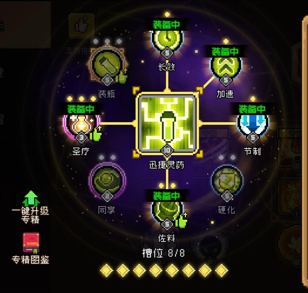 羁绊方面我用的是懒人套装,偏向于刷图,并非伤害最大化套装(其中蓄势待发是装备红冠羁绊,只能在装备上拿)(这里实测荒战主要缺少的是打单体怪的能力,打单体怪的时候致命节奏比较难吃满所以我选择不带)