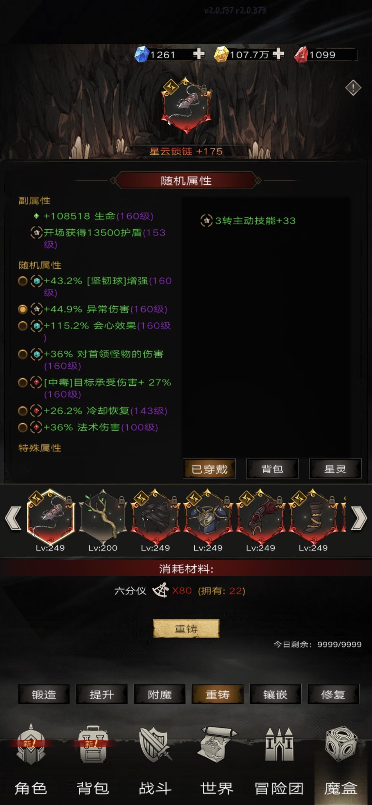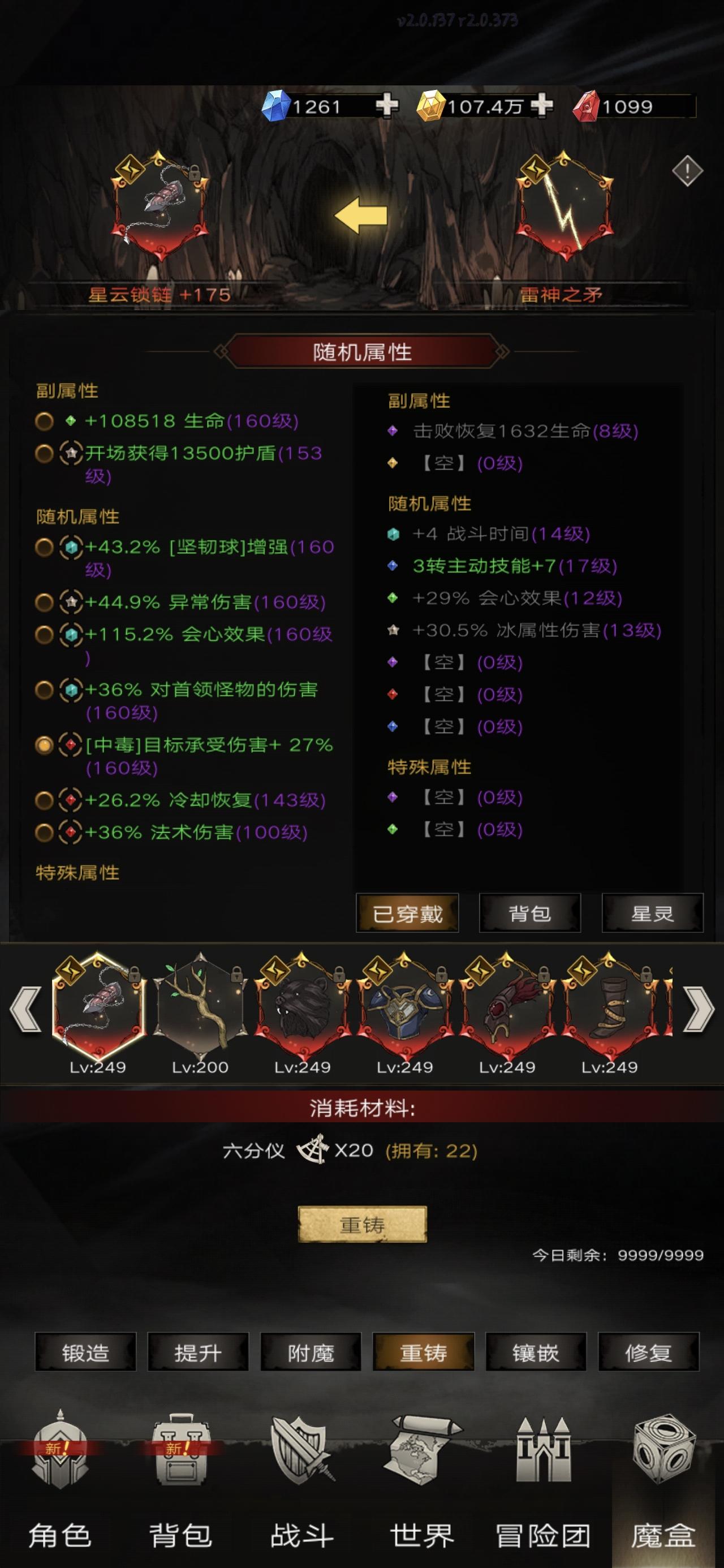 但是如果使用装备进行重铸的话,虽然重铸材料需求较少但是没办法100%重铸到目标词条,如下图。