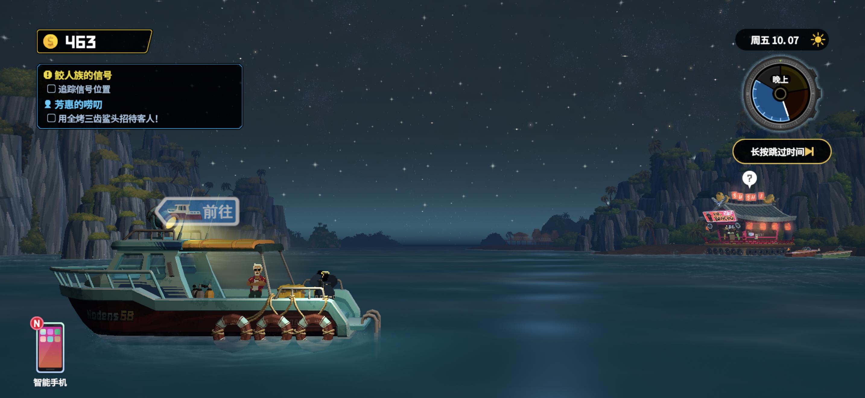 白天下海冒着生命危险捕鱼,晚上回到餐厅当服务员,比拉磨的驴还干得晚,但是游戏里面的一天过得很快,太上头。
