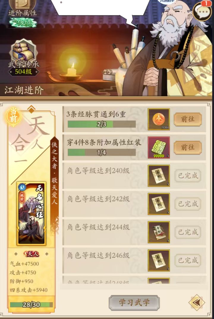 无名江湖 天人进阶条件