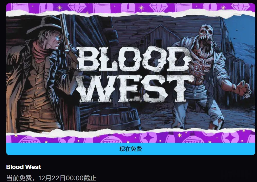 EPIC圣诞15连送第四弹 ,《血色西部》24小时限时免费领取