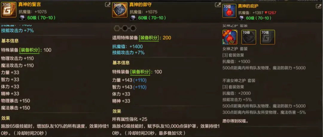 如果你是一位为队友提供输出环境的职业,那么基本上毫无疑问,直接默认这一套“不渝女神”就完全可以了!