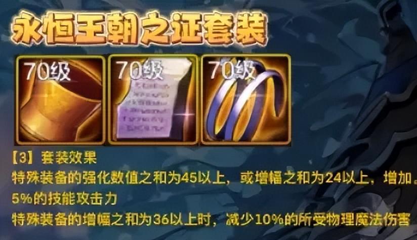 从这套装备的名称就可以看得出来,这就是典型的“版本答案”,什么叫“永恒王朝”呀?当然就是“增幅”啦!