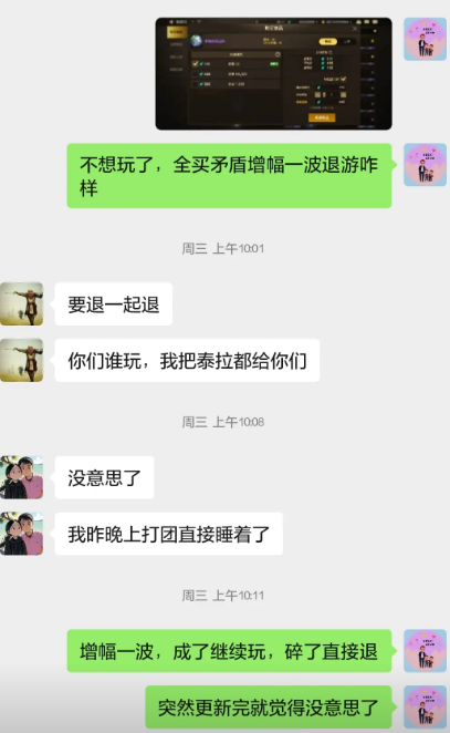 这是本周三上午发生的事,在更新完后,玩家感觉没啥意思想退坑,就准备把自己的泰拉花完全部买矛盾,也没准备着能上,就想着花完资源